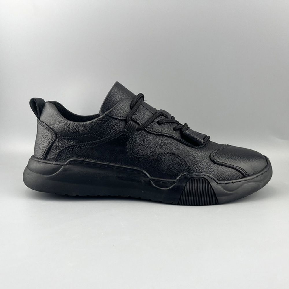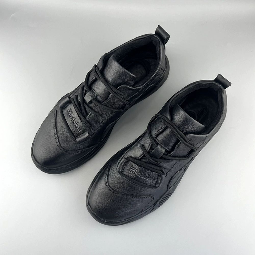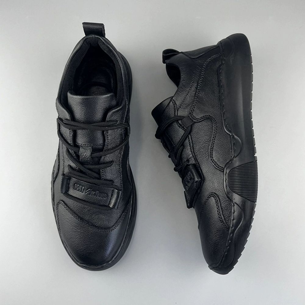 Men's Sports Shoes Thick-Soled Black Casual Leather Shoes