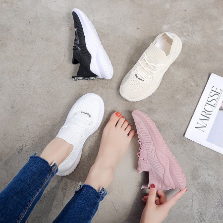 Flying Woven Sports Shoes Female Breathable White Shoes Female Summer New Student Running Board Shoes