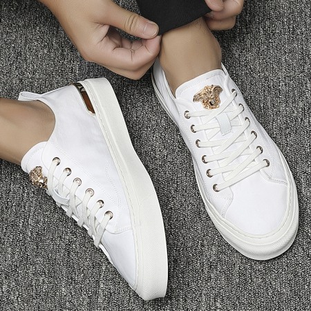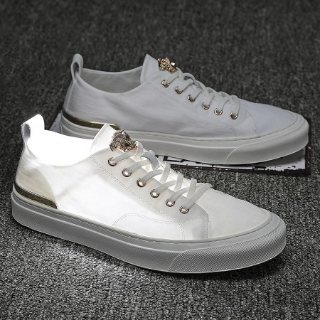 White Shoes Men's Autumn New Flat Bottom Shoes Men's Leather High Top Mens Casual Shoes